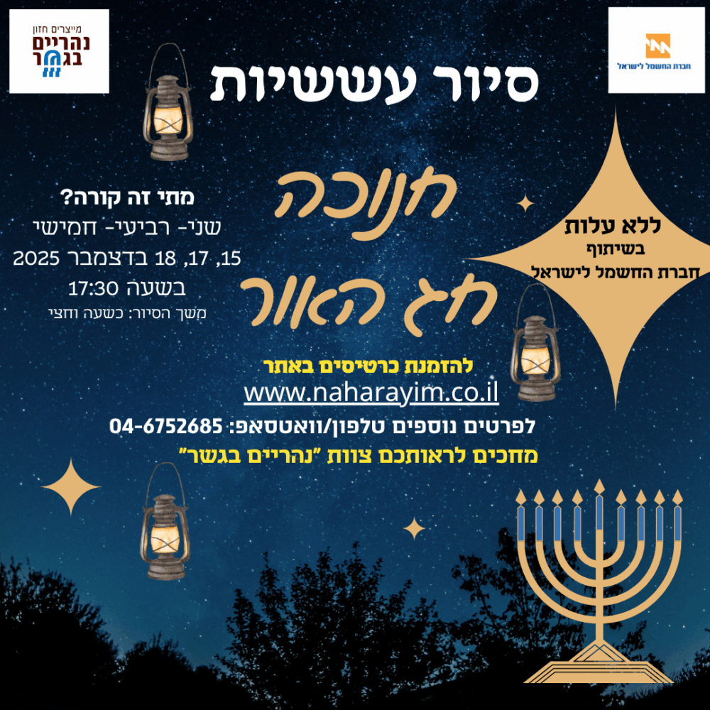 הצטרפו אלינו לחוויה ייחודית של סדנאות, סיורים ופעילויות ב"נהריים-בגשר" (גשר הישנה), אתר היסטורי מרתק המשלב טבע עוצר נשימה וסיפורי גבורה.